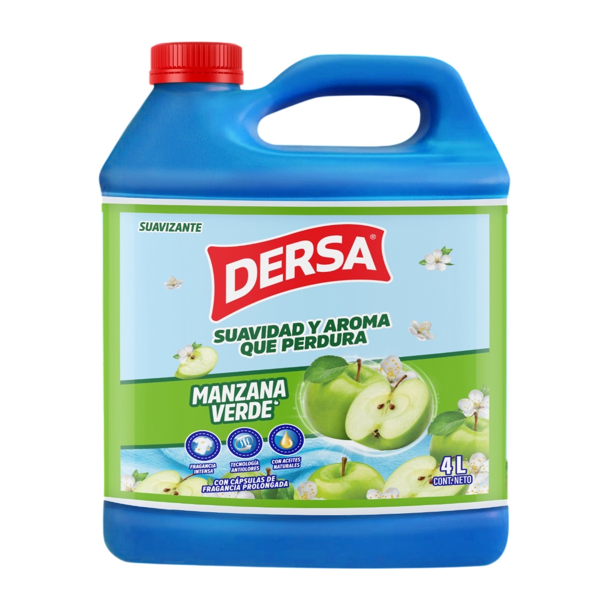 EL SUAVIZANTE DERSA DE 4000 ML CON AROMA A MANZANA VERDE ES UN PRODUCTO DE ALTA CALIDAD DISEÑADO PARA SUAVIZAR Y PERFUMAR LA ROPA DE MANERA EFICIENTE. LA MARCA DERSA GARANTIZA UN PRODUCTO EFECTIVO Y DURADERO, IDEAL PARA EL CUIDADO Y EL MANTENIMIENTO DE LA ROPA EN EL HOGAR.